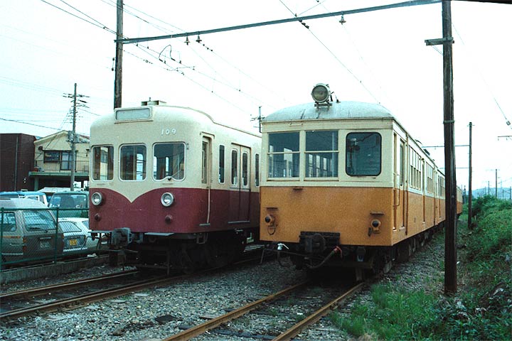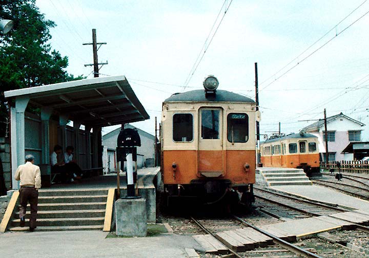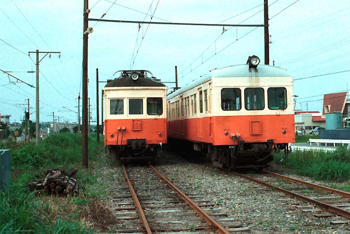 鮎川にて 左これもモハ1000形で元小田原急行モハ1型だが、相鉄時代には荷電として使われていた車両 |