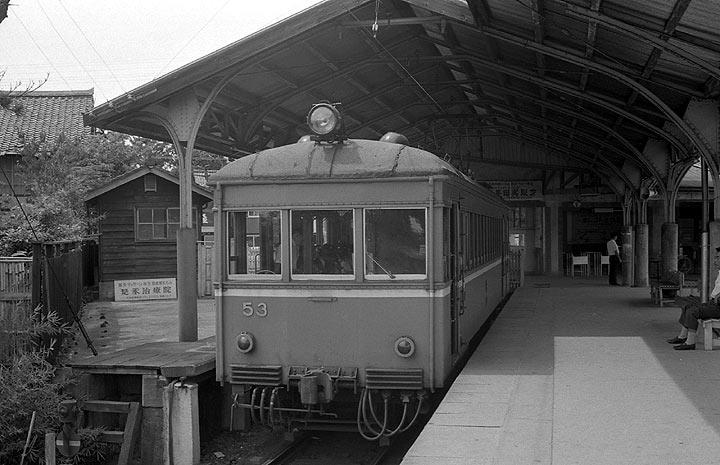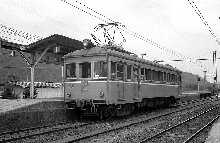 出雲大社前(1970年大社神門から改称)駅で出発を待つデハニ53 1929年日車製