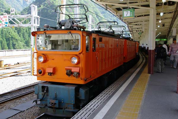 ![]() 今週の駅撮り探検団は日本に残る数少ない特殊狭軌の鉄道、まぁ平たく言っちまえば ナローなんですけど。越中富山の奥座敷、北アルプスの麓黒部峡谷鉄道宇奈月駅で 撮ったナローの電気機関車をご覧いただきます。箱型でチョイと厳つい感じの車体は 重量感溢れる感じなんですけど、ホームいる人と比較して見れば一目瞭然、ナローの ロコに恥じないミニサイズなんです。しかし、ミニサイズだからと侮る事無かれ、ナント このロコの形式はEHR101と102、と言う事はJR貨物の金太郎さんもビックラのH級の ツインロコなんですぜ。なんでEHR101・102は当然日本最大のナロー電気機関車に なるんでございます。こんなロコに牽かれて絶景の黒部峡谷を乗り鉄したかったけど、 欅平まで普通車利用で往復3千円超、懐具合が許してくれなかったのでございました。 なにせ、富山からは北陸フリー切符を使って魚津で地鉄に乗り換え、やっと宇奈月へ やって来た次第なんです。しかし情け無や、今も変らないビンボー鉄の我が身の上。 黒部峡谷鉄道 宇奈月 2010-10 Photo by 団長 |