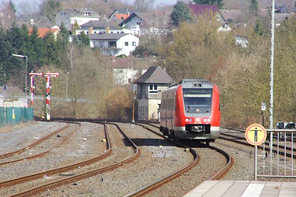 今週の駅撮り探検団は久し振りに洋物の御紹介でございます。ところは欧州ドイツの Weilburg という日本人観光客的には極めて無名ながら、それなりに魅力的な町です。 観光なんか無縁のアッシが何故?そんなローカルな町にある駅に降りたかと言うと、 当然ながら撮り鉄が目的でございました。ライン川の支流Lahn川に沿ってKoblenz と Giessen を結び Lahntalbahn と呼ばれている、この線に蒸気機関車牽引の列車が 運転されるという情報をネットで発見、ナケナシのお足を叩き遥々ドイツに来たので ございます。しかし、DB612型気動車の定期列車を適当に駅撮りしても、腕木信号に シグナルハウスと非電化のこの駅には、日本では失ってしまった鉄道情景が未だに 現役で活躍しているを見られるだけでも、嬉しいのでございました。 DB Lahntalbahn Weilburg 2011-3 Photo by 団長 |