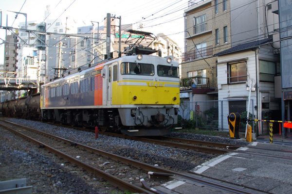 最後にご紹介は駅撮りじゃないけど、この日の本当の目標安中貨物でございます。 町屋で時間を使い過ぎて、短絡線に着いたのは時間ギリギリ、既にメボシイ場所は 同業者イッパイ、セッカクのEF81 99号機カシガマも、撮れたのは編成チョン切れの 情け無いカットだけでございました。まぁ、思鉄が鉄に行くと、ご近所でも遠征しても、 イツモこんなもん、反省という言葉が辞書に無い思鉄なのです。 常磐線田端貨物支線 2011-1 Photo by 団長 |
