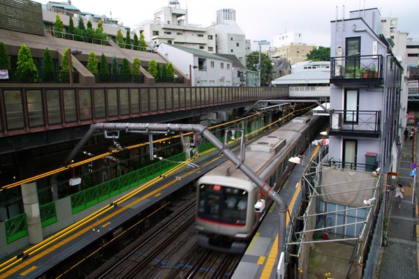 今週御覧頂く駅撮りは来年(2012年)副都心線との相互乗り入れの為、地下化工事 真っ最中、東横線代官山駅でございます。地下化と言っても、中目黒から渋谷隋道を 抜けた所にある代官山がイキナリ地下駅になるてぇのは、カナリ無理がございます。 東急のサイトを見ると、完全に地下に埋まる訳じゃなくって、軌道面を掘り下げるだけ みたいですね。しかし、東横沿線でも一二を争うヘンピナ駅だった代官山がコンナニ 激変するとはねぇ、アッシも年を取ったもんでございます。ところで、写真に写っている 5050系の急行列車、乗り入れが始まると10両編成になり輸送力アップはいいけれど、 普通は8両編成のままなんです。現行じゃダイヤが乱れると優等列車を止め全列車 各駅で運行なんて事でダイヤ回復させていたけど、乗り入れが始まったらドウヤッテ 運転整理するだろう?10両が停まれるのは当然特急・急行停車駅のみですから。 東急東横線 代官山 2010-7 Photo by 団長 |