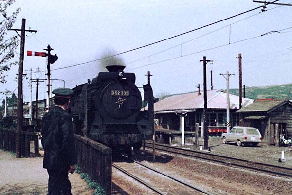 先週と負けず劣らずの低クオリティーな写真で御覧頂く駅撮り探検団、電化を目前に 控えた御殿場線は、富士岡駅に進入するD52牽引の普通列車でございます。今とは 違い当時の富士岡はスウィッチバック配線の駅でしたが、どんな配線だったか、全く 記憶が無いんです。それでも、タブレットキャッチャーが見える駅舎側線路が、恐らく 通過線だろうと推測できますよね。御殿場線と言えば、丹那トンネルが出来るまでは、 東海道本線だった訳ですから、ローカル線に格下げ後も線路規格の方は、特甲線の まんまでございました。故に国鉄最大の蒸気機関車、軸重16t超のD52が運用された 数少ない線区の一つでございました。今やJR東海御自慢の銀箱313系が行き来する 御殿場線も、腕木に蒸気に駅長さんの御出迎えと、オジサン鉄が曰く、昔は良かった シュチエーションの駅撮りでございました。 御殿場線 富士岡 1968-4 Photo by 団長 |