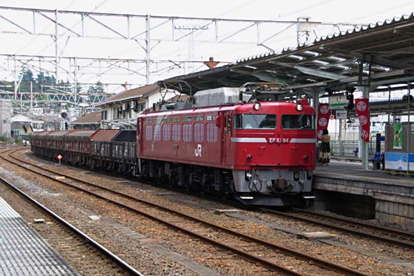 乗り換えとなりました。列車到着までの間に水郡線や機留線で昼寝中のED75などを 駅撮りしていると、向かい側の5番線をEF81に牽引された5388レ安中貨物が通過。
