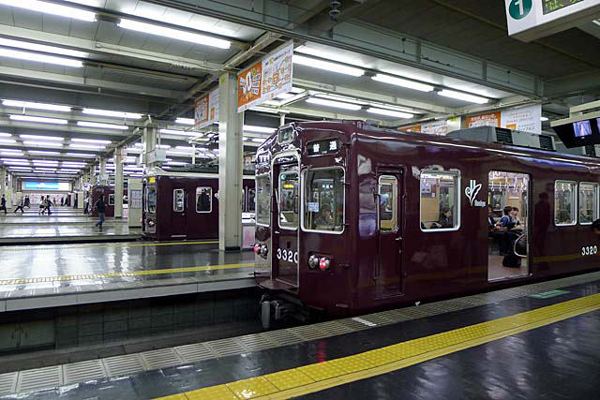 スイスでアルプス背景の駅撮りしたかと思ったら、今週はナニワは北の大ターミナル。 関西の私鉄の楽しみの一つが櫛形ホームのターミナル駅。元々関東に比べ規模の 大きなターミナルが多いのですが、その中でもここ阪急梅田駅は、10面9線を有する 巨大ターミナル。駅の巨大さもさることながら、伝統のマルーン塗装の車両がずらりと 並ぶ光景は、圧巻そのものです。そして阪急の車両は、行き先表示や列車の種別が あの憎っくきLEDではなく、未だに幕式という、なんともオールドファンにはたまらない 鉄道なのであります。でもねぇ、本音でたまらないは、左右に付けた円盤特急マーク、 それが幕式でも、たまらなくなるなんて、何故か寂しいオジサン鉄なのです。 阪急 梅田 2013-3 Photo by カモ |