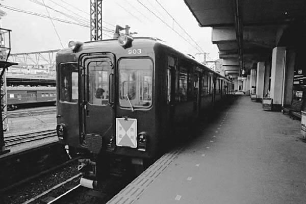 70年代近鉄ターミナル写真シリーズって程のもじゃございませんが、「奈良」 「上本町」 「阿部野橋」 に続き今回は「近鉄京都」の駅撮りでございます。新幹線開通以前は同じ 位置の地平に戦前から奈良電のターミナルとして、あったそうですが、如何な思鉄も そこまで昔の事は、知る由もございません。今の近鉄京都は新幹線ホームの直下に 4本の発着線を持った頭端式ホームが並んでいますが、4番線を増設したのは去年の 事なんです。それまでは900系が停車している3番線が、国鉄・JRに接してたんですよ。 600V時代は近鉄と言えども、百鬼夜行の中小型車のパラダイスだった近鉄京都線も 昇圧と同時に900系や8000系だらけになっちまいました。きっと、この写真撮った時も、 ケッェ!900系かよ、なんて悪態つきながらシャッター切ったんだよなぁ。その900系も 今じゃ形式消滅、単色塗装にサボ、国鉄京都駅にチョコット見えるのはマニ60かな? 相も変わらず古きを知り、新しきを知らない、懐古趣味思鉄なのでございます。 近鉄京都線 近鉄 京都 1977-10 Photo by 団長 |