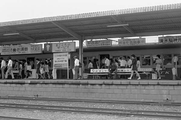 東京都市圏に位置しながら、今でも単線非電化のまま昭和の鉄道風景が沿線に駅に 色濃く残り、鉄な人の心をつかんで放さないのが小湊鉄道でございます。特に駅舎と バックの里山の情景が、各駅に見られる、駅撮りパラダイスな路線なのです。そんな 駅の中で、新設の光風台と並び人気が無いのが、始発駅の五井じゃないでしょうか。 画像検索しても出てくるのは、昔から変わらない庫に並んだキハ200のカットばかり。 でも、綺麗な背景だけが駅撮りじゃない、生活感のあるのも駅撮りと、適当に撮った 昔写真を屁理屈つけてご覧頂くは、小湊鉄道五井40年前朝のラッシュ風景なのです。 3番線に到着したのは、上総牛久発キハ5800形2連の通勤列車、ホームは内房線に 乗り換えの乗客で溢れ、活気に満ちた朝の通勤風景がみられたのでございました。 ルーツは院電、戦時買収線区三信鉄道より小湊に流れ着いた、元電車キハ5800形 現役時代ってぇのが、唯一の救いのピンボケ駅撮りで探検団で失礼致しました。 小湊鉄道 五井 1972-8 Photo by 団長 |