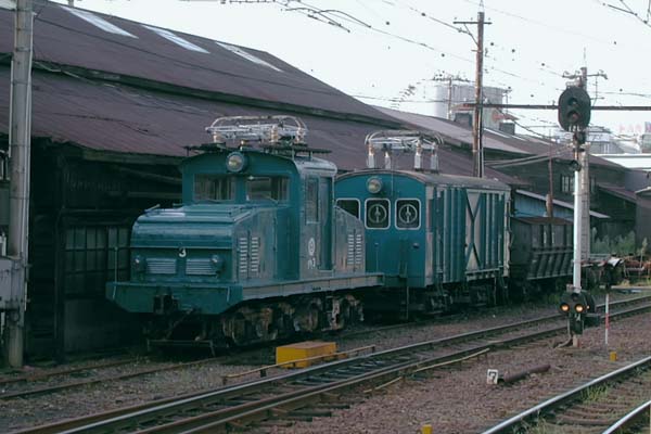 今も昔も変わらない私鉄巡りの楽しみの一つが、車庫所在駅訪問なのでございます。 今回ご紹介の福井鉄道西武生(北府駅)もソンナ思鉄好みの駅、CMで有名になった 駅舎(その後イメージ壊さずリニューアル)もさることながら、木造の工場がこれまた 昭和の香りを漂わせていました。そして、その工場の横に停まっている2両の車両が、 西武生駅撮りの目的、デキ3とデキ11なのでございます。名鉄・遠鉄と流れた凸型の デキ3、生え抜きで単車の木造電動貨車から電気機関車に出世したニセスティール? デキ11、こういう眺めが見られると、高い乗車券代も納得 ・ ・ ・ しないけど、実に 幸せなのです。貨物はとっくの昔に廃止されている福井鉄道、冬の降雪こそが2両の 命綱かもしれませんね。そう思うと、スノープラウを付けて本線で雪を蹴散らして走る 姿を一度拝みたいもんでございます。 福井鉄道福武線 西武生(現 北府) 2003-9 Photo by 団長 |