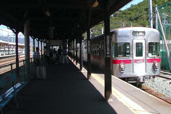 入線して来たのが銀箱3500形、夢から現へ戻された瞬間でございました。 長野電鉄屋代(河東)線 屋代 2003-8 Photo by 団長 |