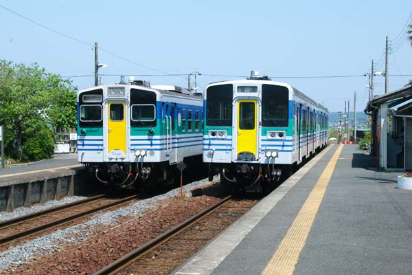 国鉄の懐具合の影響で製造僅か5両で終わったキハ37、キハ35を更新したキハ38が 仲良く並んだ横田駅。