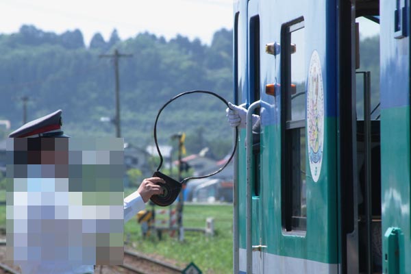 上り列車から受け取った通票を下り列車の乗務員さんに渡します。上総亀山〜横田の タマはサンカクのようですね。国鉄時代はチョイト都会を離れれば、どこでも見られた 駅風景がドンドン無くなっていくのは、寂しいですね。しかし、通票が自動閉塞に変わり ATSがATOに変わっても事故は0パーセントにはならないのは、なんでだろぉ? 久留里線 横田 2006-5 Photo by 団長 |