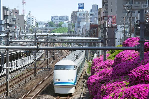 無味乾燥のコンクリートジャングルを縫って走る都会の鉄道でございますが、そこは 春夏秋冬が巡り来るわが国、山手線でもコンクリートの間に間にオアシスの如く咲く 四季折々の花々を絡めての駅撮り出来るのです。今回アップの駒込は、ホームから 線路越しにツツジの花が楽しめる駅として非鉄な方々にも有名な場所でございます。 しかし、車両とのコラボを狙う鉄な人達にとっては、ホームから直接撮影じゃ、かなり アングル取るのにゃ苦労しちゃうかも知れないのです。そこでお奨めは、ラッチ外の 跨線橋の窓から湘南新宿ライン(山手貨物線)内回りを走る列車とツツジのコラボで ございます。もっとも、架線柱やビームは、どう転んでも捌けないのでございます。 しかし、せっかくの東武からの乗りれ車100形スペーシア、思鉄的にはオレンジ色の ラインが入った昔のカラーの方が宜しいですけどねぇ。 (湘南新宿ライン)山手貨物線 駒込 2015-5 Photo by 団長 |