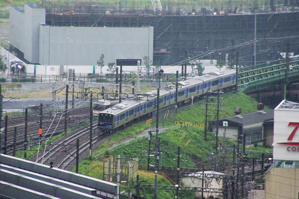 再度テレ端にしてレンズを遠方に向けて東海道本線新快速313系と名鉄2200系。