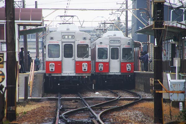 数年前の冬、野暮用で豊橋に出向いたおり、約束の時間までチョイの間鉄駅撮りを アップしちゃいます。豊鉄の始発駅新豊橋から二つ目、東海道本線を跨ぎ新幹線を 潜った先にある小池駅傍の踏切から撮った、何の変哲もない地方私鉄ならどこでも みられる交換風景なのでございまます。さて、このカットから何某かの駄文を捻くり 出さなきゃならないんですけどねぇ、さぁどうしよう。そこで先ず車両を見るてぇっと、 元東急7200系の銀箱電車1800形、東急の方じゃVVVFに改造の7600系を含めて 全廃の形式っても、別に豊鉄に来なきゃ見られないって程っレアな車両じゃないしと 思ったら、大井川の7200系は両運車に改造されてるから、ワンマン化改造されずに Mc+M+Tcの3両編成も走ってる豊鉄の1800形、ヤハリ趣味的には宜しい姿を今に 伝えているようでございます。 豊橋鉄道渥美線 小池 2013-2 Photo by 団長 |