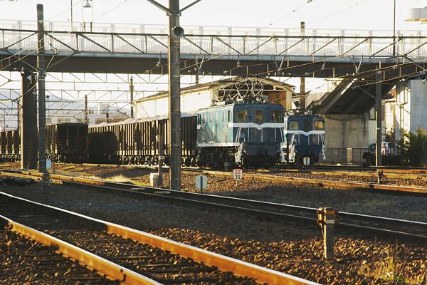 斜め後方から真冬の斜光を浴びているのは、秩父鉄道のデキ100型103号機、ヲキを 従えて武川駅の出発信号進行現示待ちでございます。国鉄健在の頃は何処でも居た 旧型直流機を車長を短くした様なデッキ付き車体がジーサン鉄には堪らないのです。 軸配置はB+Bなので、JR・国鉄なら形式は、ED○○なんてぇ言っちゃうとこを、デキと 言うのが好いのです。私鉄の電気機関車は、やっぱりデキと呼ぶのが宜しいのです。