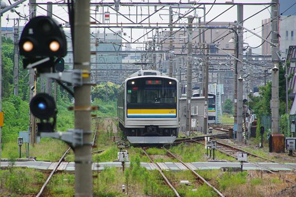 前回に引き続きまして鶴見線でお届けする駅撮り探検団、鶴見小野のお隣弁天橋で ございます。鶴見小野から1kmもない弁天橋でございますが、周りの景観は一変して 鶴見線らしさ全開の臨港風景、そんな風景の中を下り列車が、進入して来るところを 島式ホーム上り先端からの駅撮りでございます。右側にチラっと見えてる南武支線用 205系1000番台の止まっている電留線が、当線と南武支線用205系の庫となっている 鶴見線営業所なんて言う名称のJR東日本の現業部門なのです。しかし、営業所って なんかバスの車庫みたい、機関区・電車区で育った思鉄的には馴染めないのです。 たとえ鶴見線を走る車両が、205系に変ったって「南テシ」ってぇのが宜しいのです。 鶴見線 弁天橋 2011-7 Photo by 団長 |
