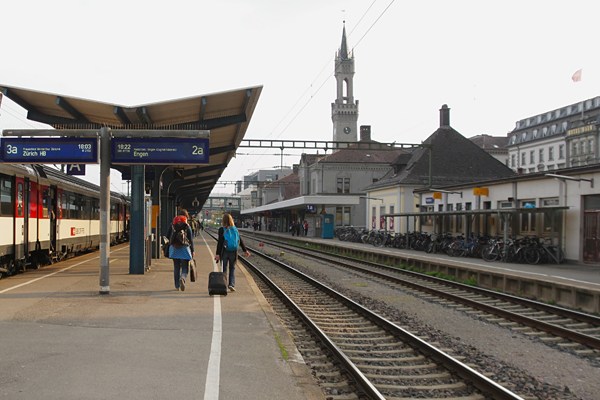 今回の駅撮りは久々の洋物でございます。今年(2017年)の4月に一昨年に体験した ドレスデン蒸気機関車祭が忘れられず、あの感動をもう一度ってんで、再度の渡欧と 相成りました。目的地はドイツも諸般の事情により、スイスのチューリッヒ空港発着と なりました。ところが、このスイスの物価てぇやつぁはベラボーに高いんでございます。 しかし、そこは陸続きで国境を接するヨーロッパ、1時間ほど列車に乗っかちゃえば、 スイスより物価の安いドイツ、ってな事でチューリッヒ空港駅16:48発のICに乗車して 着いたのがドイツはコンスタンツでございました。ボーデン湖畔の港町コンスタンツは、 スイスとの国境を接する街、駅から10分も歩けば、スイス側の街クロイッツリンゲンに 入っちゃうのでございます。そんな訳でお安いお宿を求めて降り立ったコンスタンツの ホームからスナップした駅撮り、左の3番線に停まっているのが、アッシが乗って来た インターシティーで、ホームを歩いているオネーサンは当然赤の他人、って当たり前か。 高い尖塔が自慢の駅本屋は、フィレンツェのヴェッキオ宮殿を模して造ったそうです。 しかし、これじゃ客車が端っこにチョコット写っただけの旅行記、此処は一つ駅撮りって