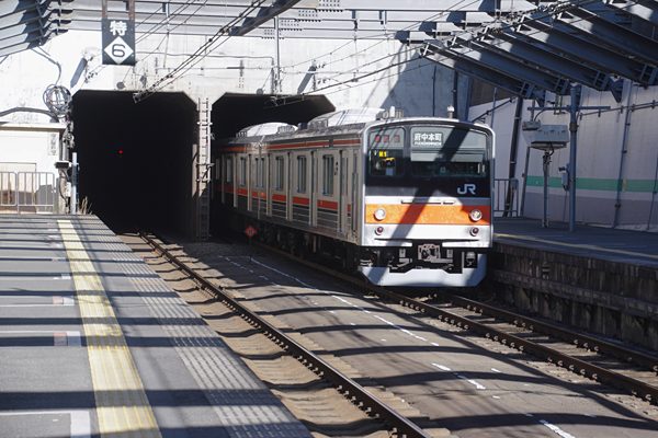 コチラは当たり前の205系なんだけど、近い将来武蔵野線から消えちゃうのは間違い 無し、何であの時撮らなかった、なんてぇ事の無い様に斑光線を物ともせずスナップ。