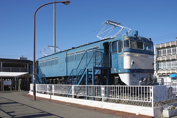駅出て左を見ると静態保存されている、直流機が見えたんで速攻間近に行くてぇっと、 なんとEF60 123号機でございました。アッシの頭ん中じゃEF60と両毛線の貨物レって いやぁEF15辺りの茶色の旧型直流機なんで調べてみるてぇっと、このカマの引退時の 庫が、「高二」でございました。これ撮った9年程前で見たとおりの悲惨な状況、チョット 気になってググルてぇっと、2017年にボランデェアでリストアーされる方々が決まった 模様で、一安心致しました。そして最後は駅前から伸びるグランド通りに出て駅舎を
