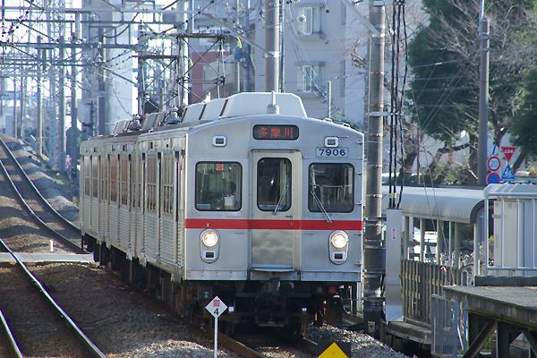 第二京浜をオーバークロスして武蔵新田に進入する7906F、そう言やぁ昔は目蒲線と 二国は平面クロスだったけ、一体いつ頃踏切無くなったたんだろう?思い出せない。 写り込んでる停車位置目標「臨4」、目蒲線時に3両編成から4両になって、3両編成の ままの池上線よっか偉くなったけど、南北線・三田線乗り入れの為、多摩川から先が 目黒線に変更されっちまって、3両編成に逆戻り、元の木阿弥東急最弱となりました。 東急多摩川線 武蔵新田 2008-1