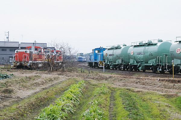 樽見鉄道のTDEが、稼動していた頃の駅撮りなんで、当然住友大阪セメント専用線も 生きてました。その専用線からタキを牽いて専用線から本巣駅に進入する、住友大阪 セメントのスイッチャー、日立製35t機D101号機でございます。