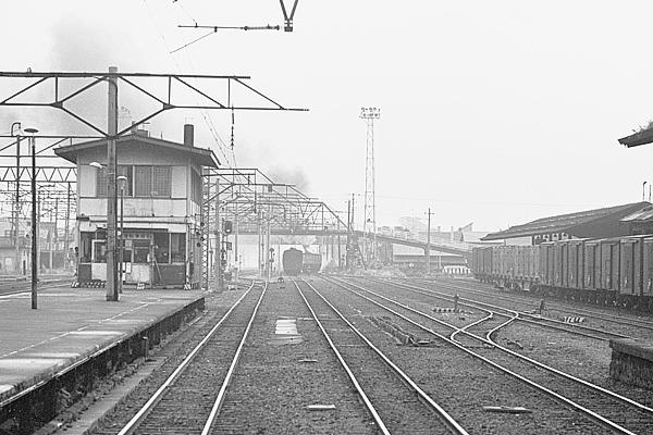 第一・第二と蒸電二つの機関区に客貨車区操車場が稼動していた頃の岩見沢駅は、 ホームから何時でも稼動している車両を拝める、鉄にとっちゃぁ天国の様な処でした。 一コマ目にアップした画像、左っ側が3・4番のホーム、真ん中の線路はホームの無い 2番線、その隣が本屋に接した1番線だと思います。そして、セキを連ね煙を上げて 出発していくのは、牽引機の方は判んないけど、幌内線空返貨物列車でございます。 ところで、画面の左右にホームが写ってるこのカットって、線路に降りなきゃ撮れない 掟破りの駅撮りなんて、疑われちゃイケないから、如何やって撮影したのか種明かし。