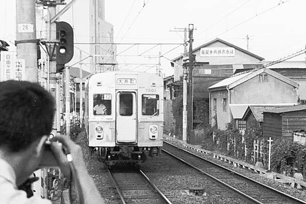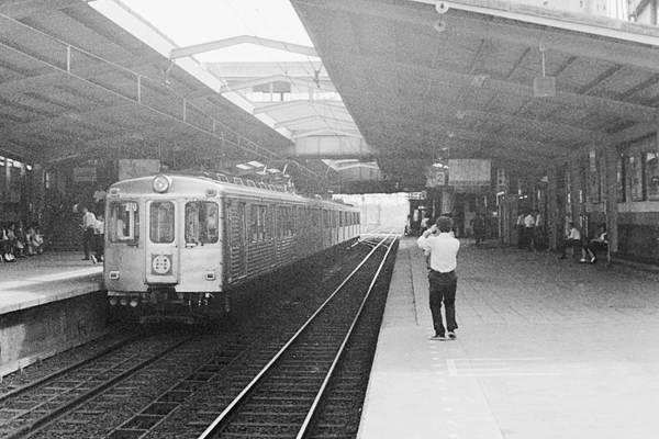 東横線は日比谷線と相互乗り入れ、大井町線が田園都市線だった頃に自由が丘で 松原物故団員が、スナップした駅撮りを蔵出しスキャン致しました。なお原版ネガは、 ハーフサイズなんで画質の方は、それなりでございます。東急線自由が丘は、高架の 東横線と地平の田園都市線(現大井町線)が直角に交わった構造、1コマ目は、その 東横線上りホームから地平の田園都市線下り方面を見下ろすアングルでございます。 右側に上り線を走ってるのは、デハ3450形先頭の旧3000系4連大井町行、それから 左側に見えるのは、当時は健在だった自由が丘車庫、停まってるのは、左旧6000形 右旧7000形でございます。この車庫施設、現在は東急お得意の商業施設に変身済。