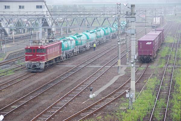仙台臨海仙台北行の空返のタキを青森方面から持って来た、ED75本務の当駅終着 貨物レも到着してたんで、上り方面にある道路橋まで行って撮影も、架線がなんとも。