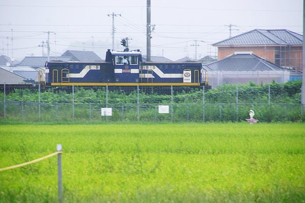 駅に戻るてぇっと、SD55 103号機が、入換終わって今にも出発ってな感じ、大急ぎで 砂押川に架る橋とこに在る踏切りを目指すも間に合わず、仙台臨海と並行している 仙塩道路橋脚の間からやっとこスナップしたけど、先頭のカマ1両だけナントカ記録。