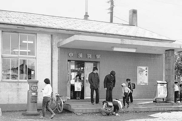 コチラは、結構大きかった駅舎のエンタランス部分、出入口のドア越しに見えんのは、 営業中のキオスクです。っと言う事は、キオスクが営業できるだけの乗降が、当時の 中湧別にゃ在ったですね。 名寄本線 中湧別 1973-10 Photo by 松原の親方 |