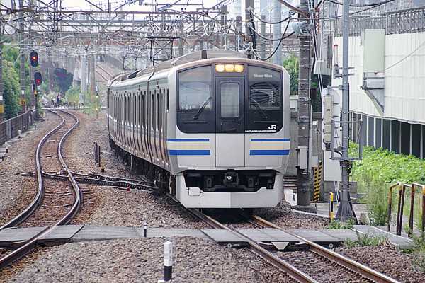 251系と入れ代わりに上り線を走って来たのが、今年(2025/03)スカ線・総武線から とうとう姿を消したE217系です。銀箱ながら、車体に巻いたブルーとクリームの帯に 70系の面影を僅かに残していたとこが、ステンレス車体でもお気に入りの車両でした。