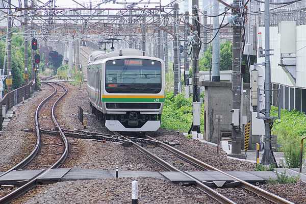続けて現れたのは、湘南新宿ライン高崎行E231系、こりゃパスかなっと思ったけど、 過去に何回もバラストなげりゃ当たっちゃう、当時は何処でも見られた車両を撮らず、 気が付きゃ全車引退。ナンデあの時撮らなかったなんて事にならない様にスナップ。