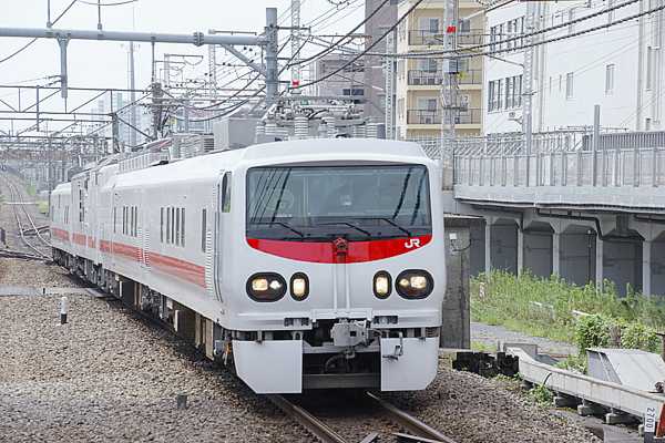 最後は、武蔵小杉駅撮りの目的、デジタルおいらんマヤ50 5001を編成に組み入れた 検測車E491系でございます。JR東は、このE491系に'East i-E イーストアイダッシュ' なんてニックネームを付けってけど、検測車なら無暗矢鱈横文字なんざぁ使わないで、 昔っから呼んでるマヤ検てぇ呼ぶのが、一番じゃないでしょうか。 湘南新宿ライン・横須賀線 品鶴線 武蔵小杉 2018-8 Photo by 団長 |