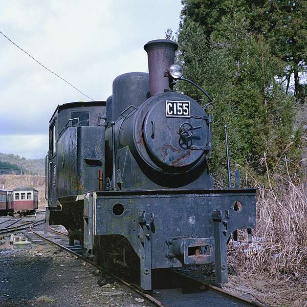 さてドン尻に控しは、無火状態なれども廃止まで車籍を保持した、立山重工業製造の C155でございます。このカマは、今も小松市立ポッポ汽車展示館で静態保存中です。 尾小屋鉄道 尾小屋 1976-12 Photo by 富山の鉄迷 |