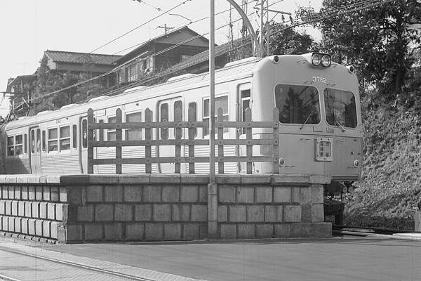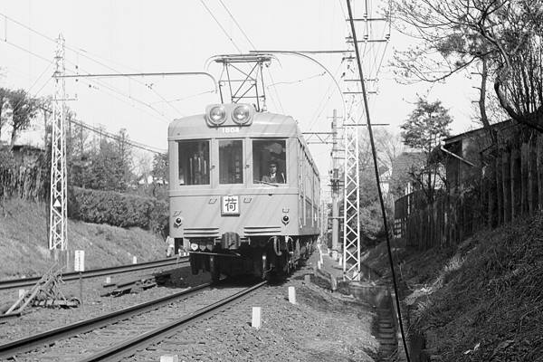 そして、3000系の過ぎ去った踏切りに渋谷方面から接近して来たのが、「荷」のサボを 付けた、荷電代走のデハ1800系1804号車でした。井の頭線の荷電と言えば、茶色に 白帯巻いたデニ101だけど、全倹中だったのかも知れませんね。ただ不思議なのは、 デハ1800系って確か片運車のはず、だけど写角じゃデハ1804号後位の状況が、全く 分かんないのです。 京王電鉄 井の頭線 東松原 1970-? Photo by 松原の親方 |
