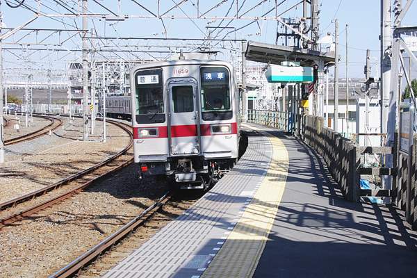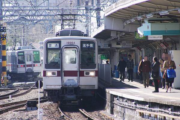 浅草を出発して高架線を走って来た東武線の列車が、漸く大地に敷かれたレールの 上に戻れる、鐘ヶ淵に入って来たのは、10030系北千住行きローカルでございます。 駅に進入する列車を正面から撮った、一見掟破りのアングルですが、荒川放水路の 開削に因って急曲線の構内となった、鐘ヶ淵上りホームからのスナップでございます。