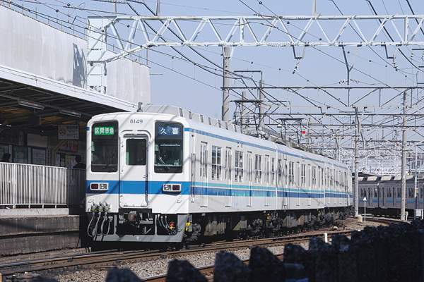 次は、ラッチ外に出て線路っ端から、昔ながらの低い柵越しに、下りホーム停車中の 8000系区間準急久喜行をスナップ、なお今じゃ(2025年)8000系は、当然の事ながら 区間準急も昼間のスジは、消滅しちゃってます。