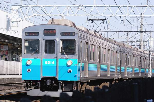 8000系区間準急の次は、上り通過線にこれまた懐かしい、伊豆急色の東急8500系。