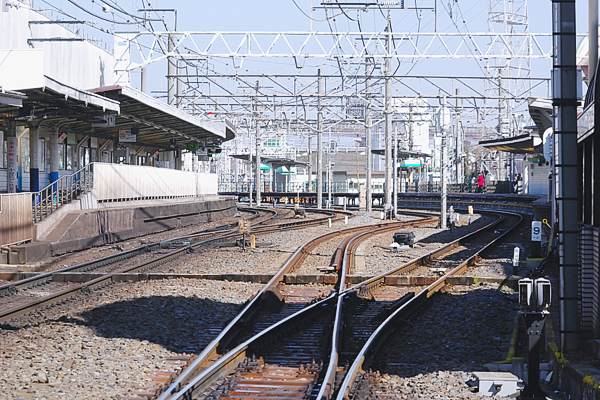 浅草寄りに在る踏切からスナップした鐘ヶ淵駅、急カーヴの構内がよく分かりますね。
