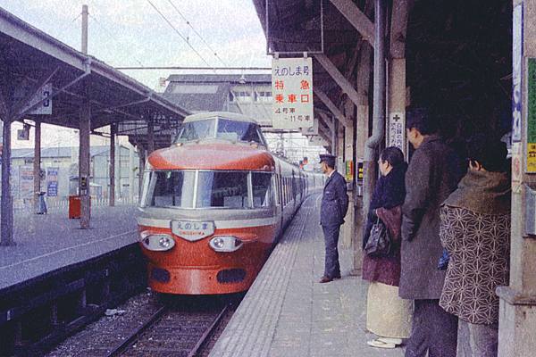 ヘッドマーク探検団レギュラーって勘違いされるほどのアップ回数を誇った、かつての 小田急フラッグシップ車3100系ロマンスカーでございますが、2000年4月の引退から 今年(2026年)で早や26年の時が流れました。そこで今回ヘッドマークは。ここんとこ アップしてなかった、ロマンスカー3100系だけど「はこね」もう見飽きちまった、ってな リクエストに答えて、昔々の藤沢駅に到着するNSE3100系特急「えのしま」をアップで ございます。まぁ態々昔々なんてぇ断なくったて、ネボケタ発色とカビだらけの画像を 見りゃ古ネタてぇのが、一目瞭然でございます。でも、アッシの記憶を手繰るてぇっと、 江ノ島線の特急てぇなぁ昔は、ほとんど3000系SE・SSEだった様な、だけど自信無し。 もっとも、今となちゃぁ平日に「えのしま」を名乗る特急は、下り1本上り3本だけっきゃ 無いんですよね。 小田急 江ノ島線 藤沢 1975-2 Photo by 松原親方 |