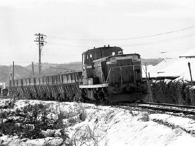 関東には珍しい雪景色の中を走る、DE10牽引のセメント列車。