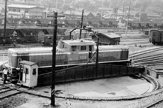 出入庫の為かターンテーブルに乗るDD51 50号機、背景のセラも懐かしい。