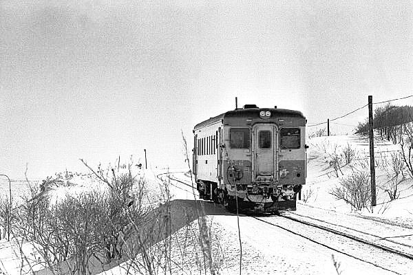 快晴も気温は当然氷点下、真冬のオホーツク、斜内山道を行くキハ22。