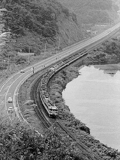 大沼湖畔を行くキハ82系特急おおぞら。