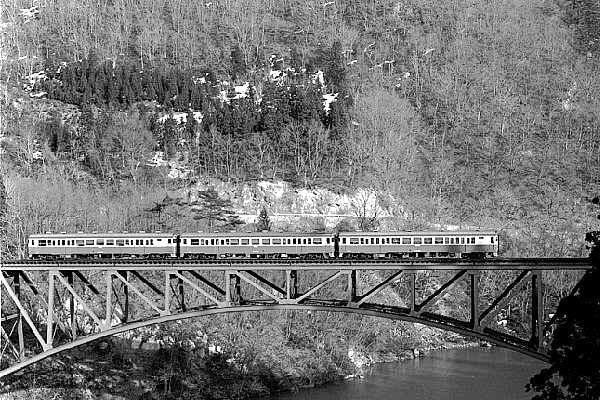 10系気動車が多かった当時の只見線では輝いていたキハ23系の3連。
