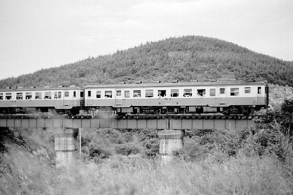 最高高度地点付近を走る2個エンジン付きの強力型、キハ52とバス窓のキハ10。