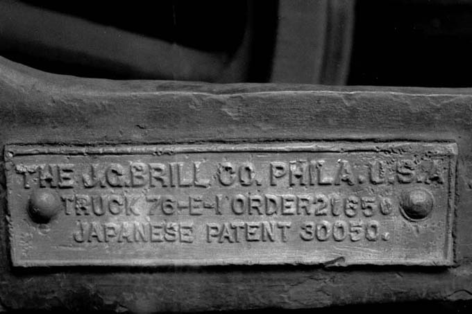 の台車に付いていた銘板、ブリルの字がはっきり読み取れます。