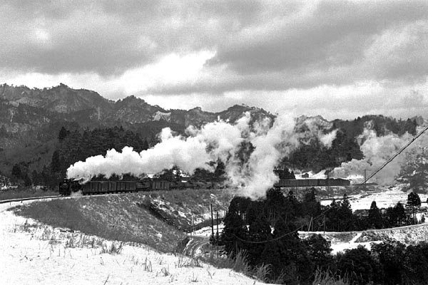 昔から有名な撮影地、加太の大築堤を補機付きで上がるD51牽引の貨物列車。