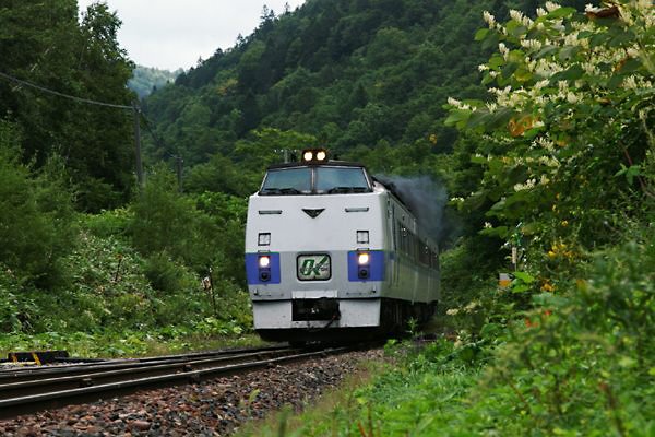 やがて下り特急オホーツクが現れたところで、カメラの電池がアララァ〜・・・・。