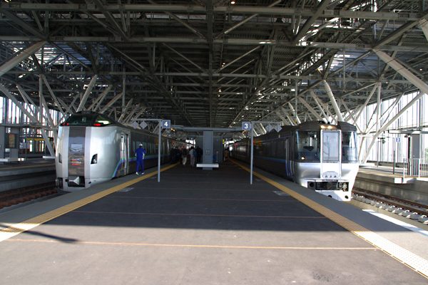 旭川に着くと駅が高架に変っていてビックリ!その高架ホームに並ぶ789系と785系の新旧 函館本線 旭川